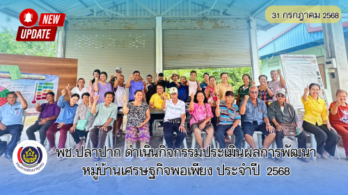 นายธวัช ภักดี พัฒนาการอำเภอปลาปาก พร้อมด้วยเจ้าหน้าที่สำนักงานพัฒนาชุมชนอำเภอปลาปาก ดำเนินกิจกรรมประเมินผลการพัฒนาหมู่บ้านเศรษฐกิจพอเพียง ประจำปี 2568 โดยมีกลุ่มเป้าหมาย คือ ผู้แทนครอบครัวพัฒนาบ้านนาสะเดา หมู่ที่ 8 ตำบลหนองฮี จำนวน 30 คน มีวัตถุประสงค์เพื่อประเมินผลการพัฒนา สรุปบทเรียนและค้นหาแนวทาง วิธีพัฒนาต่อยอดการส่งเสริมการพัฒนาหมู่บ้านเศรษฐกิจพอเพียงให้มีประสิทธิภาพ โดยใช้การเรียนรู้แบบบ้านพี่ บ้านน้อง พร้อมทั้งสร้างให้หมู่บ้านสามารถเป็นต้นแบบในการส่งเสริมความรู้ด้านเศรษฐกิจพอเพียงไปสู่หมู่บ้านอื่นๆ ต่อไป